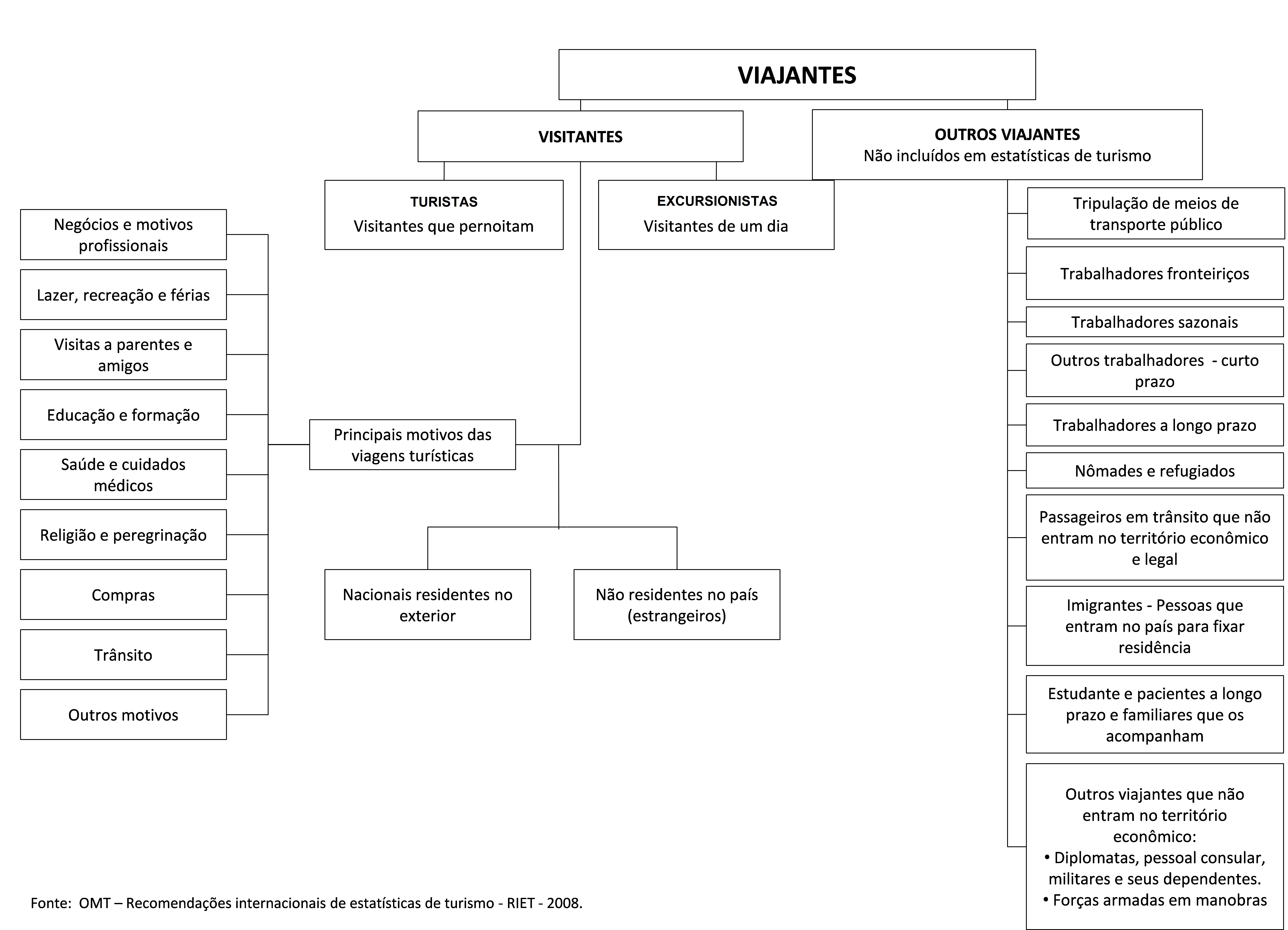 Referência: A base de dados é formada por registros administrativos de migração coletados nos postos de fronteira e cedidos ao Ministério do Turismo pelo Departamento de  Polícia Federal. Os dados são tratados estatisticamente de acordo com o marco teórico das Recomendações Internacionais de Estatísticas de Turismo, editadas em  2008, pela Organização Mundial de Turismo – OMT, com o intuito de garantir comparabilidade internacional. Esse processo de tratamento inicia-se com a depuração da base com  a exclusão dos tipos de viajantes não incluídos nas estatísticas de turismo, seguida da verificação do enquadramento de cada registro na classificação de turista (visitante que inclui pernoite em sua viagem) e da conversão da variável nacionalidade em país de residência permanente, que se constitui em variável chave das estatísticas de turismo. Ao final tem-se o número de chegadas de turistas internacionais ao  Brasil.